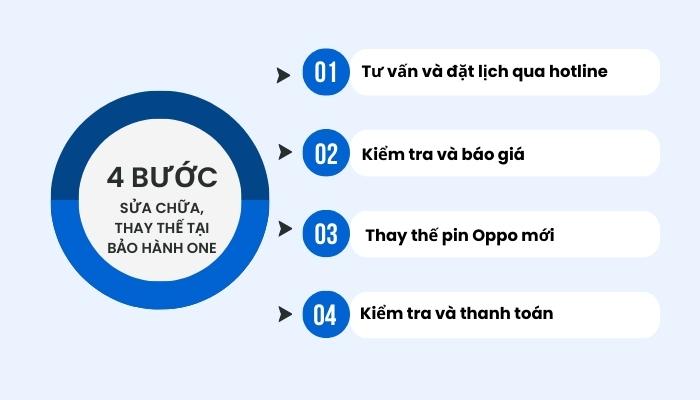 Đến với Bảo Hành One, bạn không chỉ đặt niềm tin vào chất lượng mà còn trải nghiệm sự chuyên nghiệp và tận tâm từ đội ngũ của chúng tôi. Bảo Hành One cam kết mang đến quy trình thay pin Oppo nhanh chóng, chuyên nghiệp như sau: