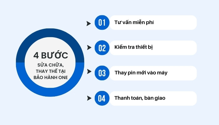• Bước 4: Chúng tôi tiến hành kiểm tra kỹ lưỡng toàn bộ thiết bị để đảm bảo rằng pin hoạt động tốt không có lỗi nào khác. Cuối cùng, thiết bị được bàn giao lại cho khách hàng kèm theo tem bảo hành và các chương trình ưu đãi khác.