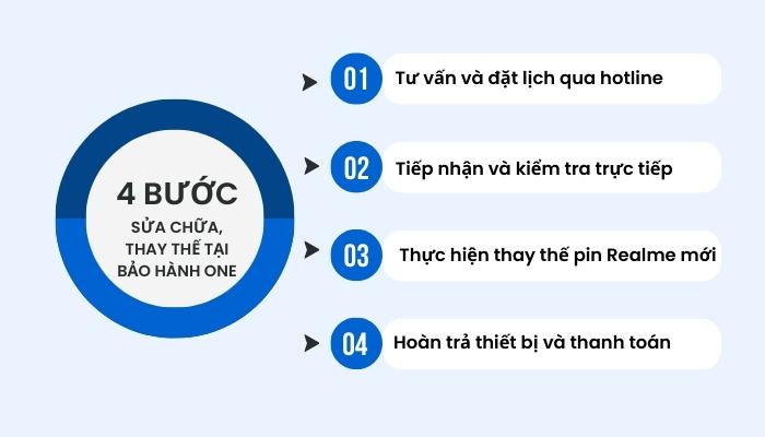Nhằm đảm bảo trải nghiệm và tiết kiệm thời gian cho mỗi khách hàng khi đến với Bảo Hành One, chúng tôi xây dựng quy trình thay mới pin Realme C25Y chỉ với 4 bước cơ bản sau:
