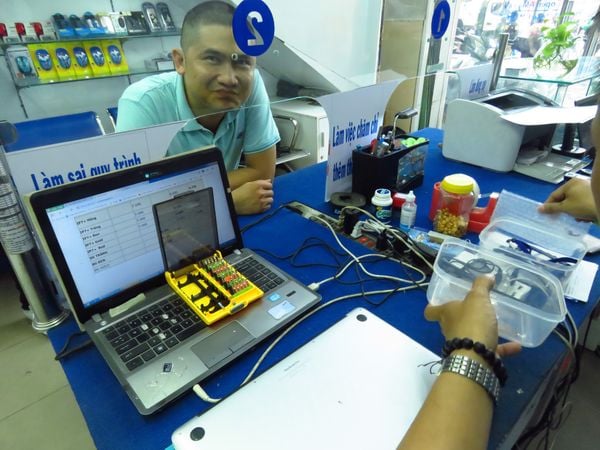 • Sau khi khách hàng mang máy tới trung tâm thì nhân viên sẽ nhận máy chuyển vào phòng kỹ thuật tiến hành kiểm tra, xem xét tình trạng hư hỏng pin của máy và báo giá dịch vụ sửa chữa.