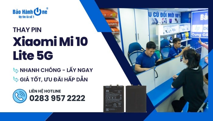 Điện thoại Xiaomi Mi 10 Lite 5G sở hữu dung lượng pin khủng đủ để ứng người dùng trải nghiệm mọi tính năng mà không phải lo lắng về việc sạc pin liên tục. Tuy nhiên, do thời gian sử dụng pin của điện thoại Xiaomi Mi 10 Lite 5G có thể gặp phải nhiều vấn đề khác nhau dẫn đến hư hỏng. Việc thay pin mới là giải pháp tốt nhất để khôi phục hiệu suất cho thiết bị của bạn. Nếu bạn đang tìm kiếm một địa chỉ uy tín để thay pin Xiaomi Mi 10 Lite 5G tại TP.HCM? Hãy cùng Bảo Hành One tìm hiểu bài viết dưới đây nhé!