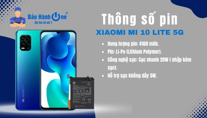 Thông số kỹ thuật pin Xiaomi Mi 10 Lite 5G